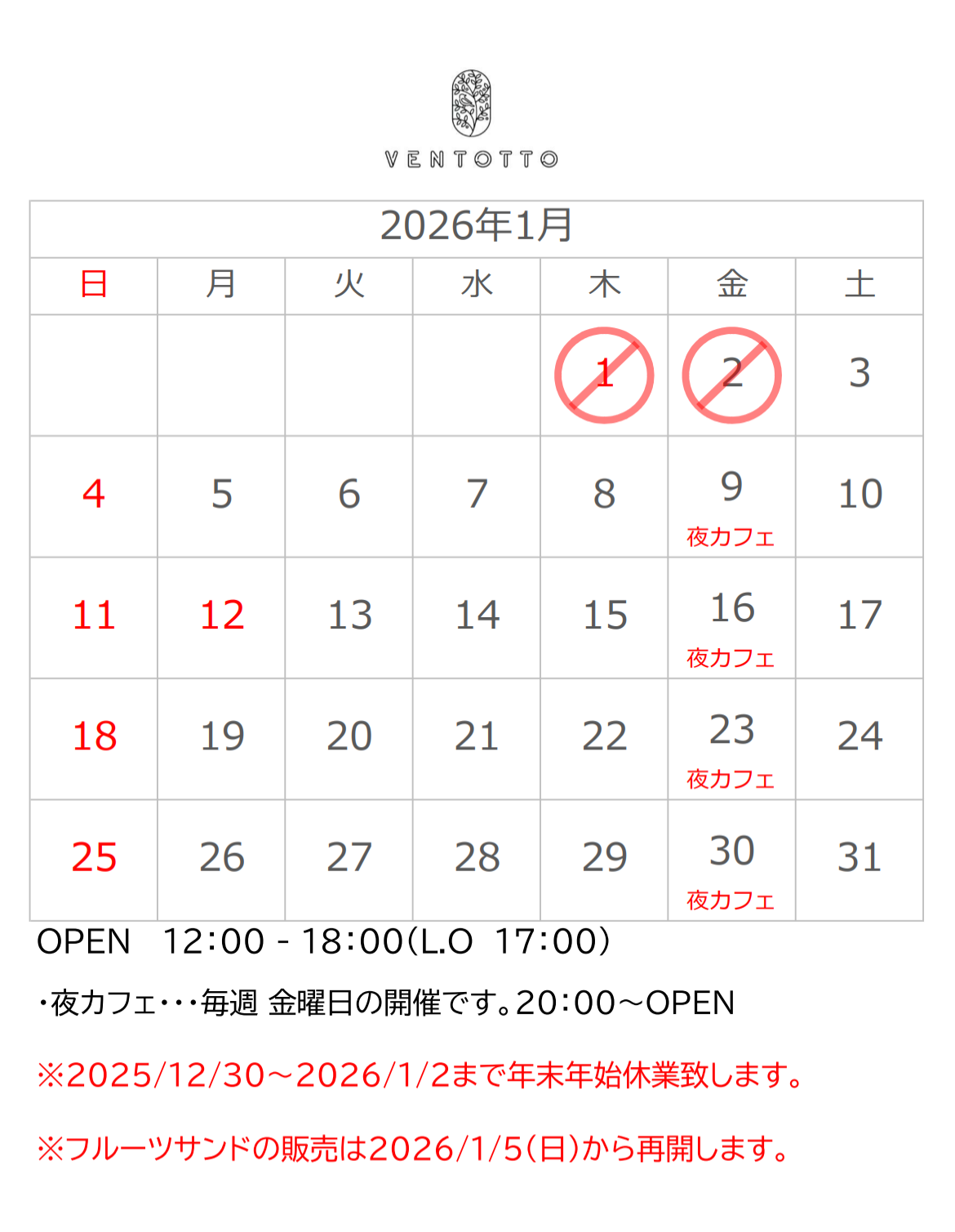 2026年1月の営業日について